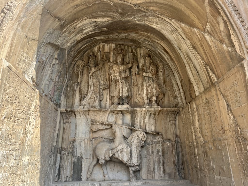Bu bölgeyi gezerken küçük bir olayda yaşadık. Büyük revak diye adlandırılan en soldaki eserin yan duvarların da bazı sahneler var ve uzaktan fark edilmiyor. Çıkmak yasak yazısı var ama bir engelde konulmamıştı. Ben oraya çıktım arkamdan iki kişi daha çıktı. İki kişi fotoğraf çekiyorlardı biraz onları bekledim. Sonra ben video çekmeye başladım. O sıralarda bir adam bağırıyordu, arkadaşım Amir Bey inmem gerektiğini görevlinin uyardığını söyledi ama birazdan inerim diye çekime devam ettim sonra da indim. Adam baya kızgındı ve yasak yazısı var orada neden çıktı ki deyince bizim arkadaşta, o Türkiyeli oradaki yasak yazısı Farsça onu bilemez ki dedi ama görevli bizi girişteki polis kulübesine getirdi. Kulübedeki görevli kamera görüntülerini bize gösterdi ve bu görüntüler merkeze de gidiyor onun için arkadaşın telefonunu aldı ve bir iki görüntüyü sildi. Sonrada sildiklerimi tekrar geri alırsın dedi. Aslında benim telefonumu alması gerekiyordu ama öylesine göstermelik bir işlem yaptı.