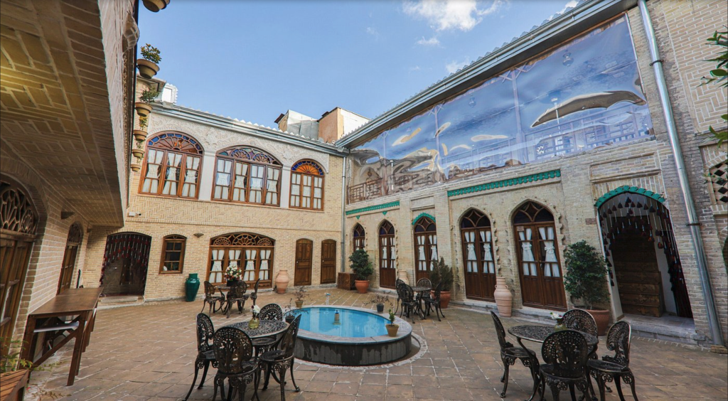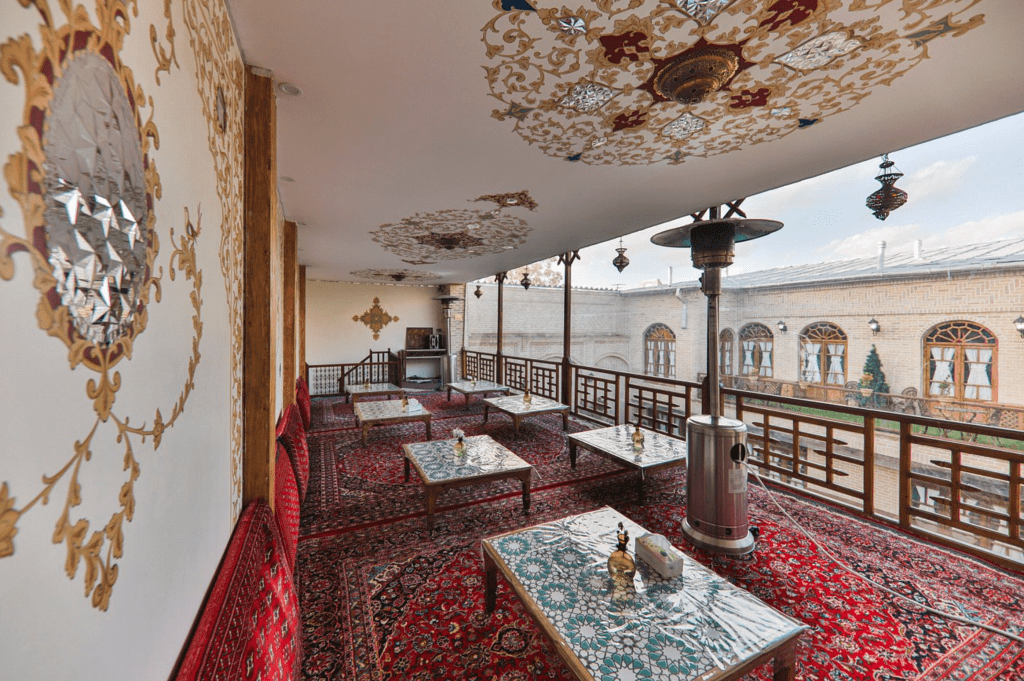Hamedan’da programımız bittikten sonra akşam Kirmanşah’a geldik. Arkadaşlar eski bir konaktan dönme bir butik otelde rezervasyon yapmıştı, iyide olmuş. Hamedan’daki eski hamamdan dönme restoran gibi burayı da çok sevdik. Ortada küçük havuzu olan bir avlu ve avlunun etrafında iki katlı bina. Giriş katı lokanta, mutfak resepsiyon türü şeyler, üst katta ise odalar var. Odalarda numara yok onun yerine antik çağdaki İran şahları isimleri yazılmış. Mesela benim kaldığım odanın ismi, Şapur’du. İran’da bu isimde şehirlerde var; Nişabur, Cündişapur ve Bişapur gibi. Hava iyi olduğundan akşam avluda çay içtik, sabah kahvaltısını da aynı yerde yaptık.